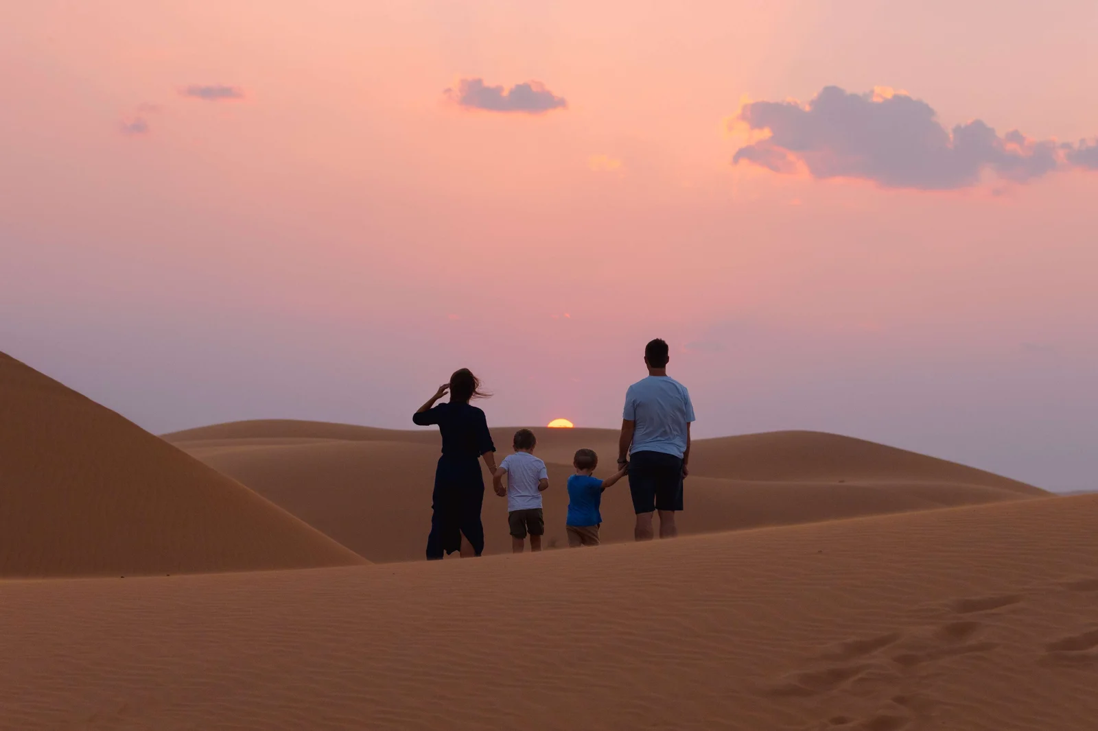 Gäste können zahlreiche Wüstenerlebnisse buchen, wie z.B. Dune Bashing im Geländewagen, Kamelritte bei Sonnenuntergang, Sandboarding oder Quad-Touren.