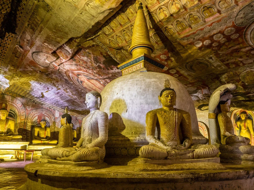 Nur wenige Kilometer entfernt liegen die Höhlentempel von Dambulla, geschmückt mit über 150 Buddha-Statuen.